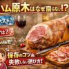 当然、ハムは「木」からできているわけないので、豚の脚のことを原木と呼んでいるわけなんですが、「なんで木なんだろう?」という疑問が…